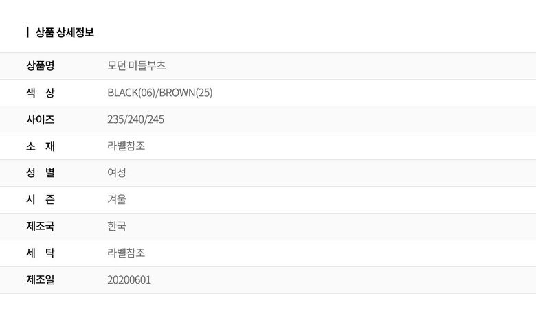 | 2. 색상 | 색상:BLACK(06)/BROWN(25) |