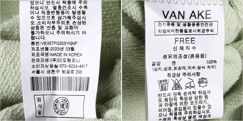 | 6. 세탁방법 및 취급시 주의사항 | 상세페이지 참조 |