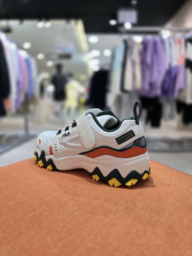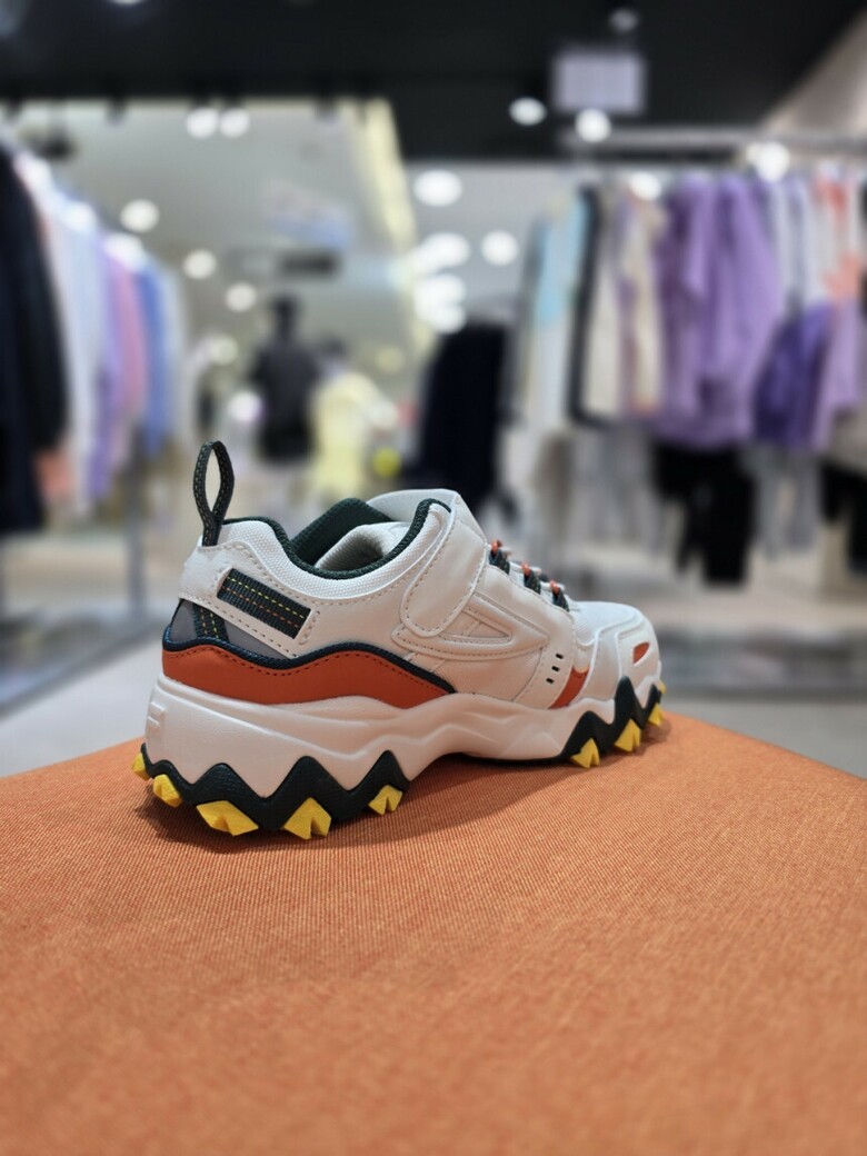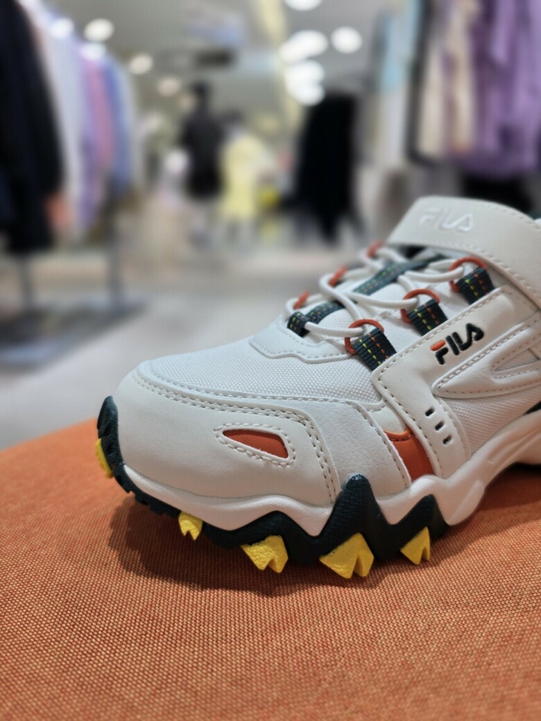 - 트레킹화를 연상시키는 과감한 아웃솔과 복잡한 패턴의 갑피 디자인의 조화가 돋보이는 제품