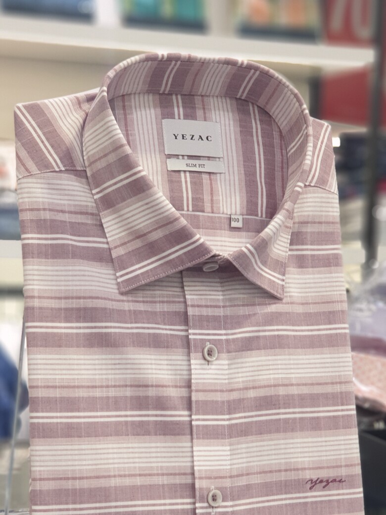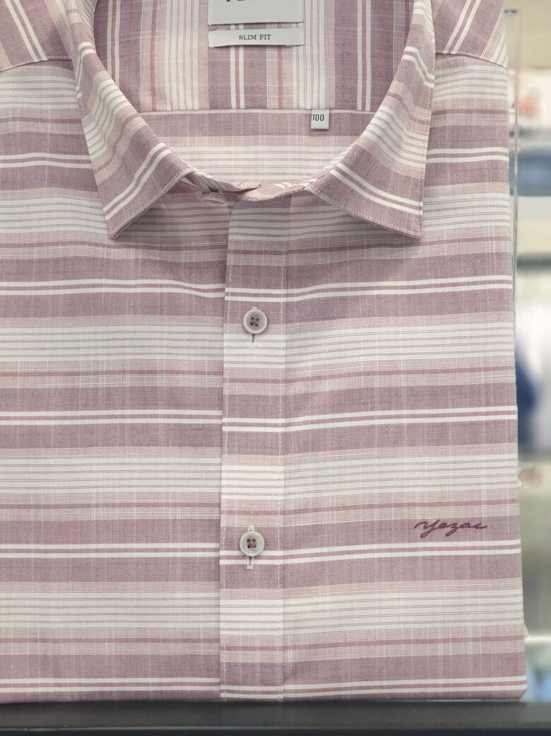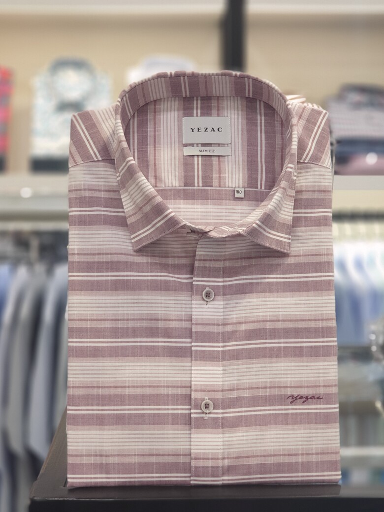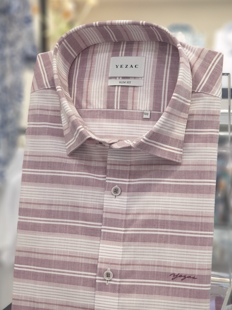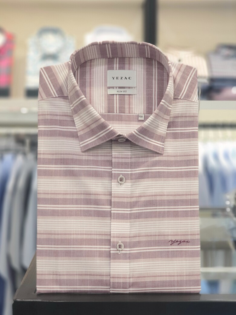 [예작셔츠] 반소매 면혼방 슬럽사 멀티가로줄 슬림핏셔츠 YJ1MBS423WI