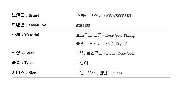 | 1. 소재 / 순도 / 밴드재질 | 로즈골드 / 쥬얼리 - 로즈골드 도금 / 팬던트 - 크리스탈 |