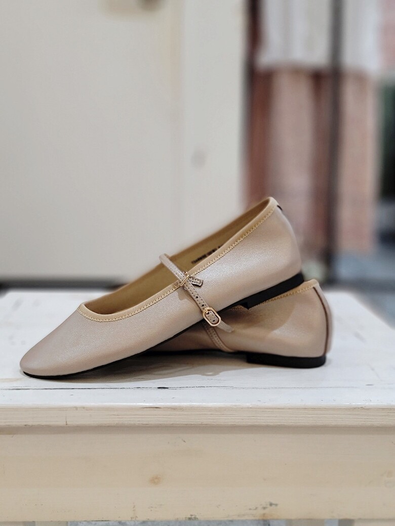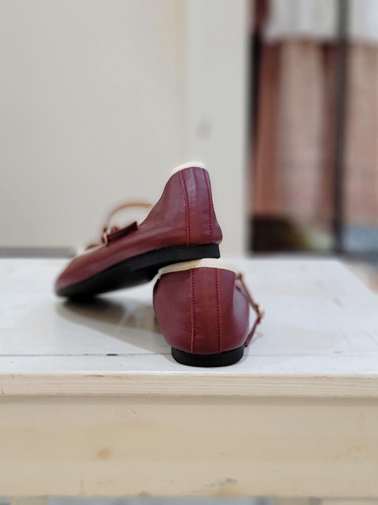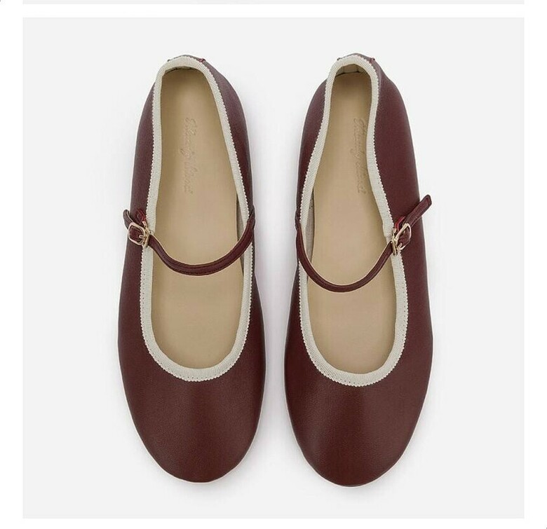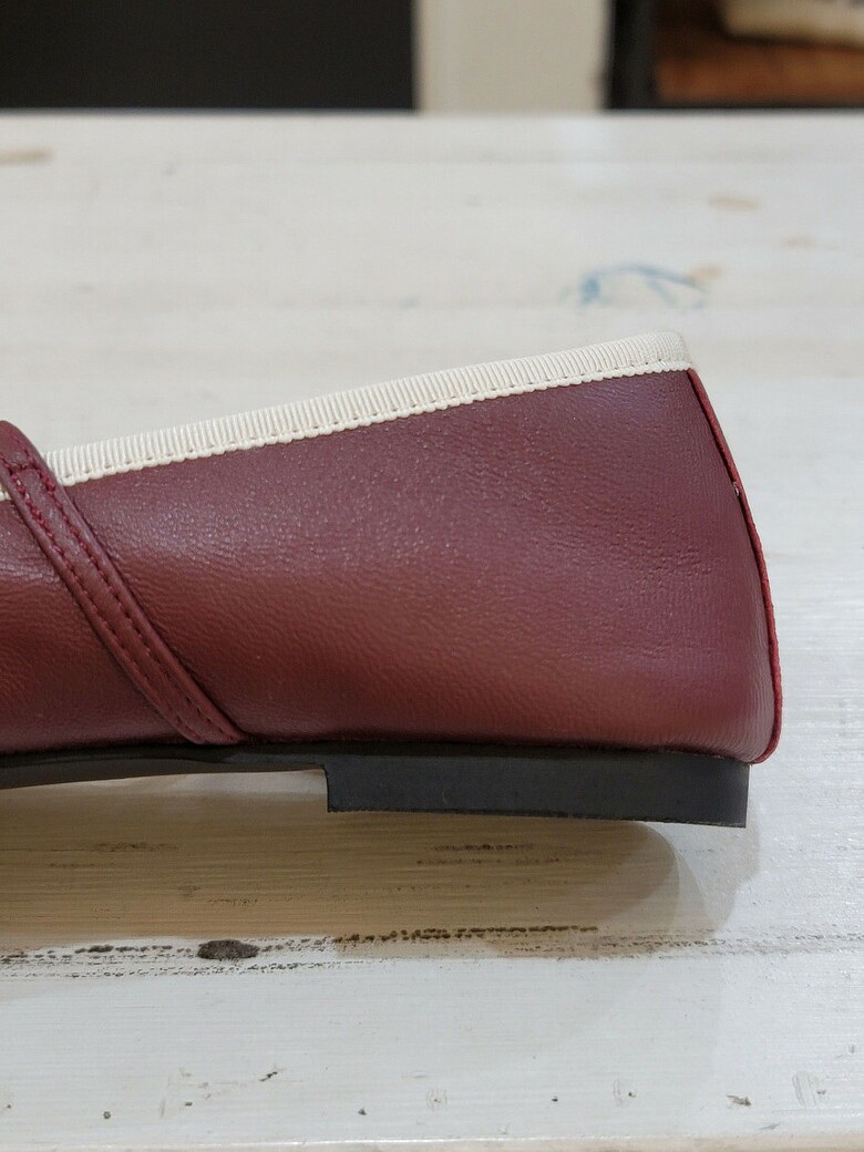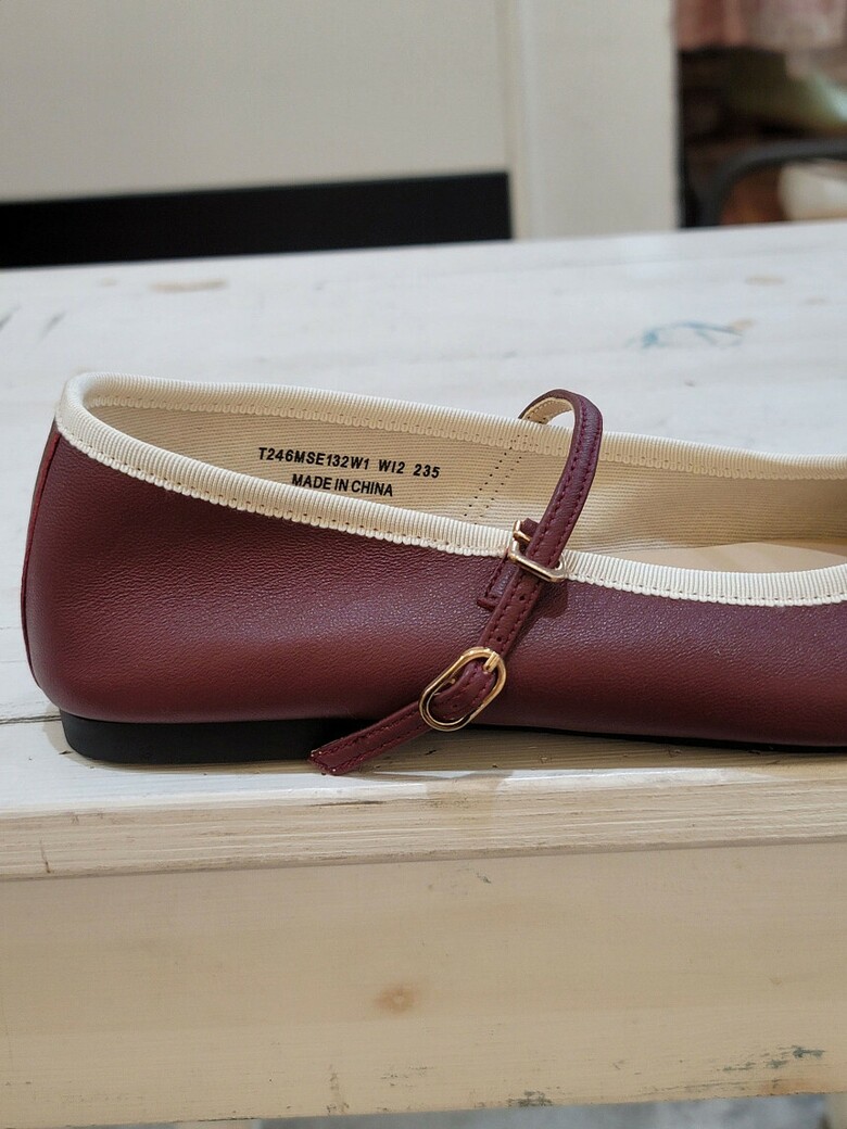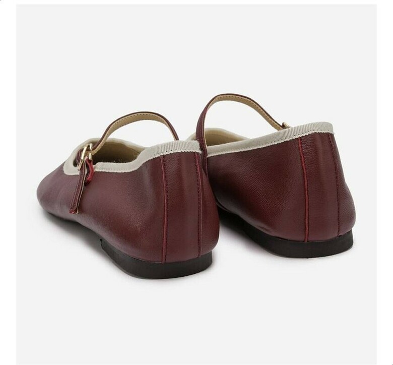 포인트 칼라로 배색이 들어가 유니크한 디자인의 메리제인 슈즈입니다.