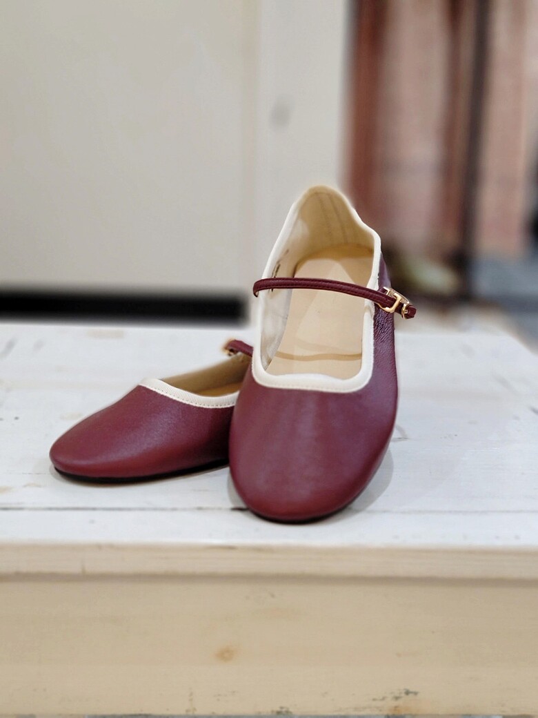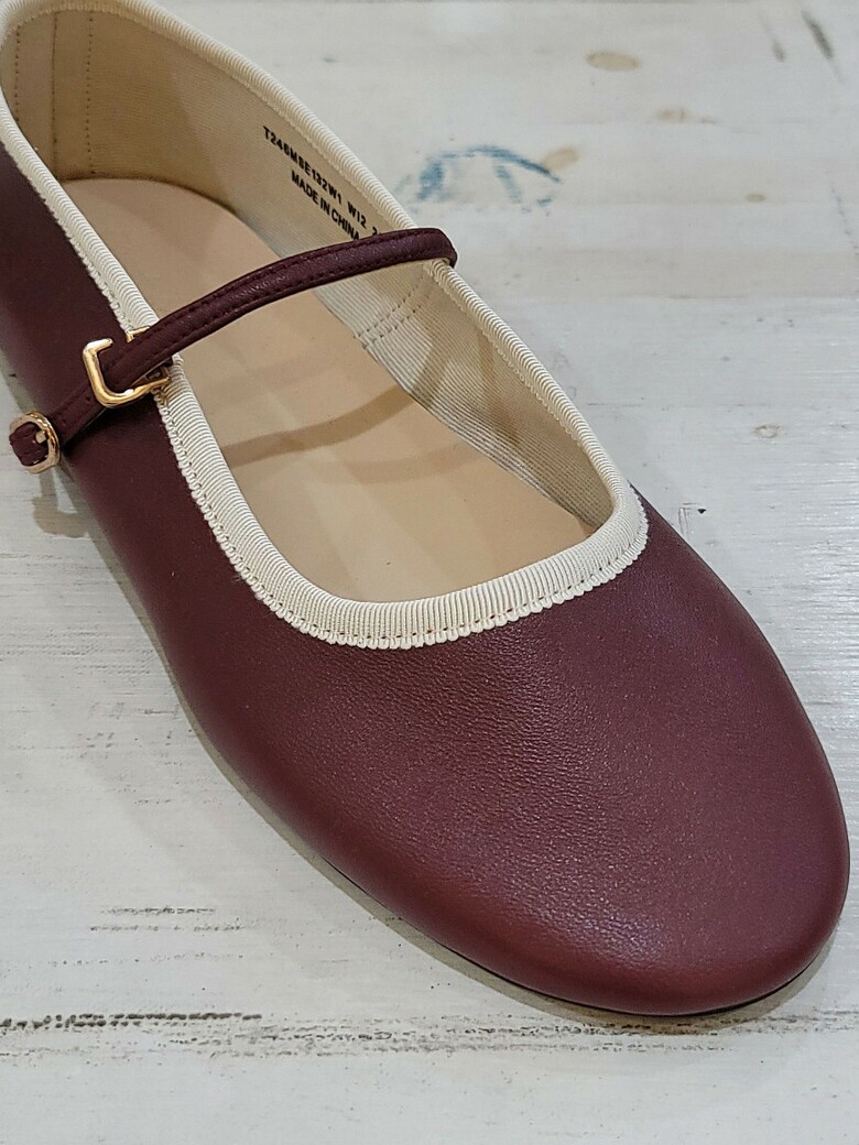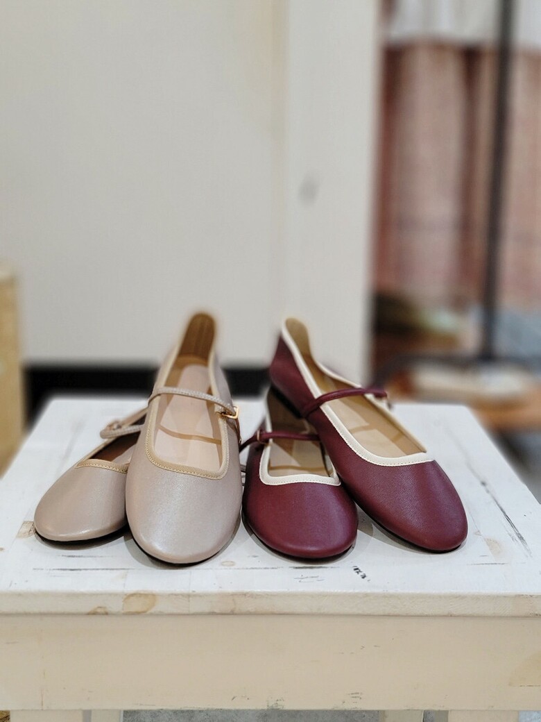 포인트 칼라로 배색이 들어가 유니크한 디자인의 메리제인 슈즈입니다.