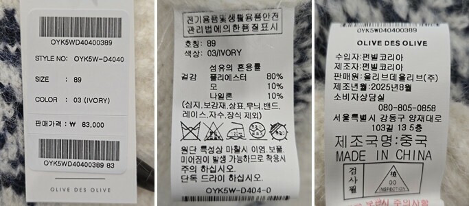 · 취급 시 주의사항 : 원단 특성상 마찰시 이염,보풀,미어짐이 발생 가능하므로 착용시 주의하십시오.