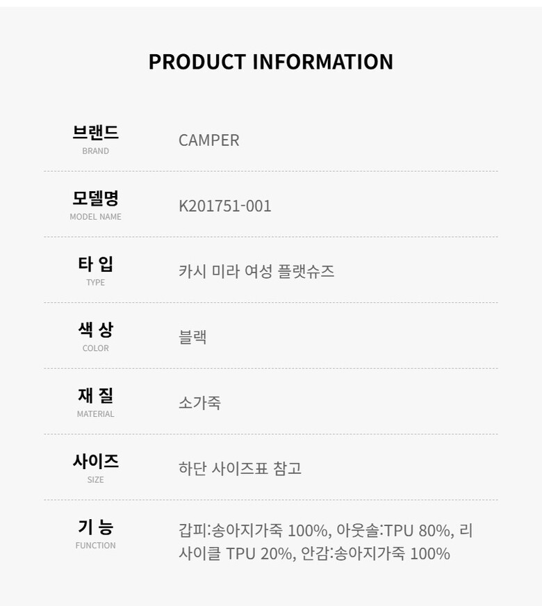 | 4. 제조사 | 캠퍼/MACHO-병행수입 |