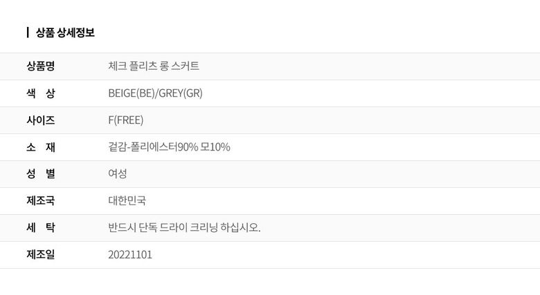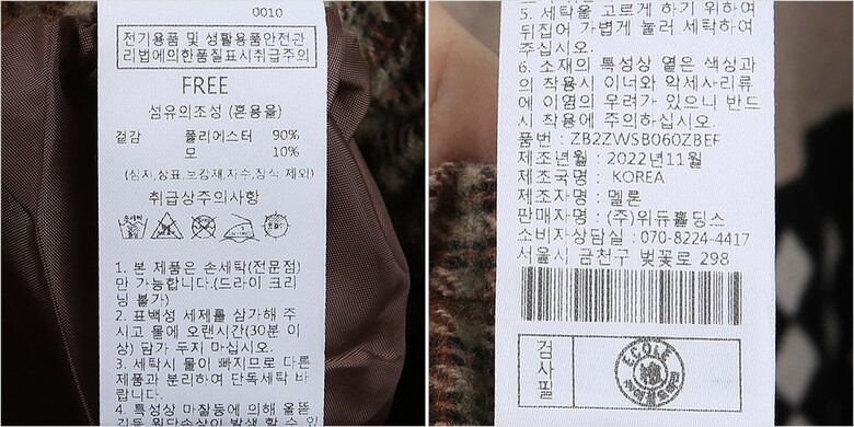| 1. 제품 소재 (섬유의 조성 또는 혼용률을 백분율로 표시, 기능성인 경우 성적서 또는 허가서) | 겉감-폴리에스터90% 모10% |