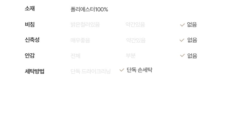 • 처음 배송된 상품상태와 다를 경우(세탁/착용 후 외출하신 경우) 반품이 불가합니다.