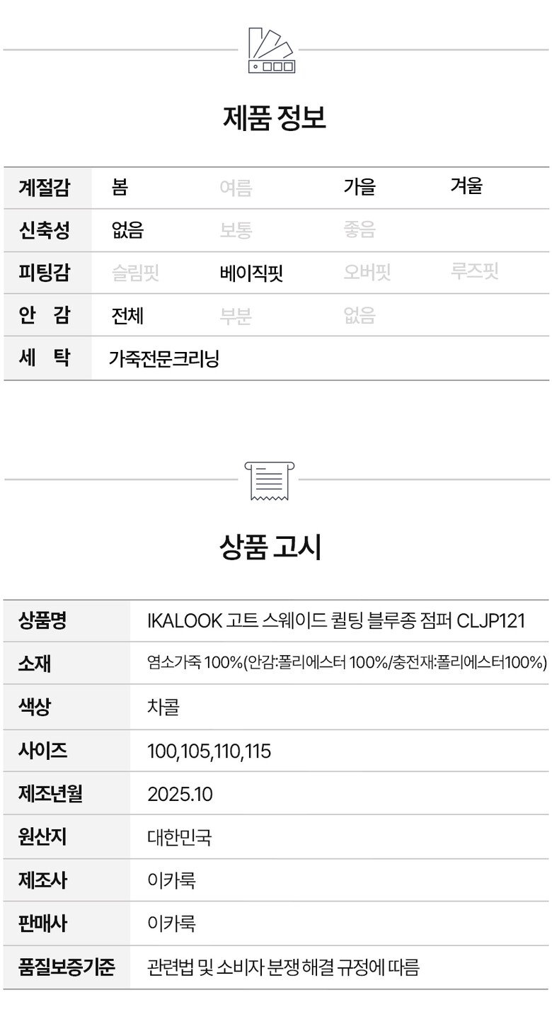 IKALOOK 고트 스웨이드 퀼팅 블루종 점퍼 CLJP121