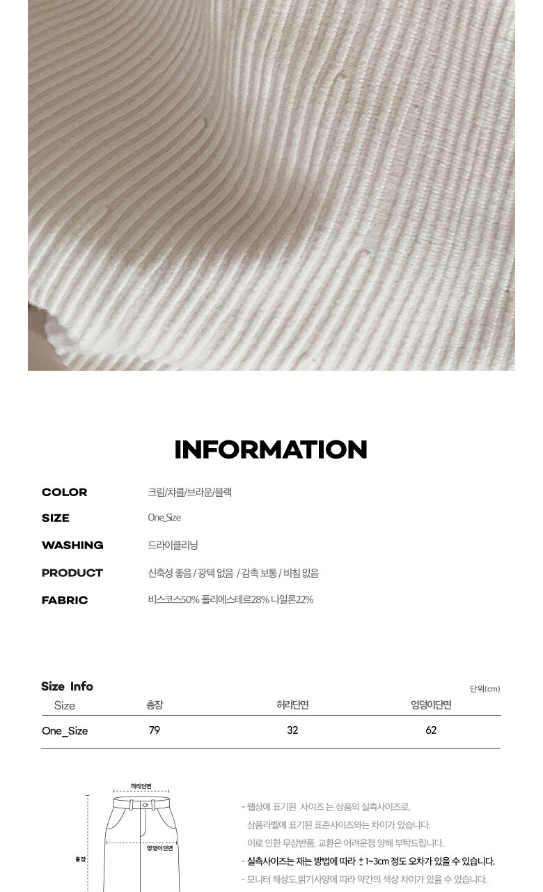 | 1. 제품 소재 (섬유의 조성 또는 혼용률을 백분율로 표시, 기능성인 경우 성적서 또는 허가서) | 비스코스50% 폴리에스테르28% 나일론22% |