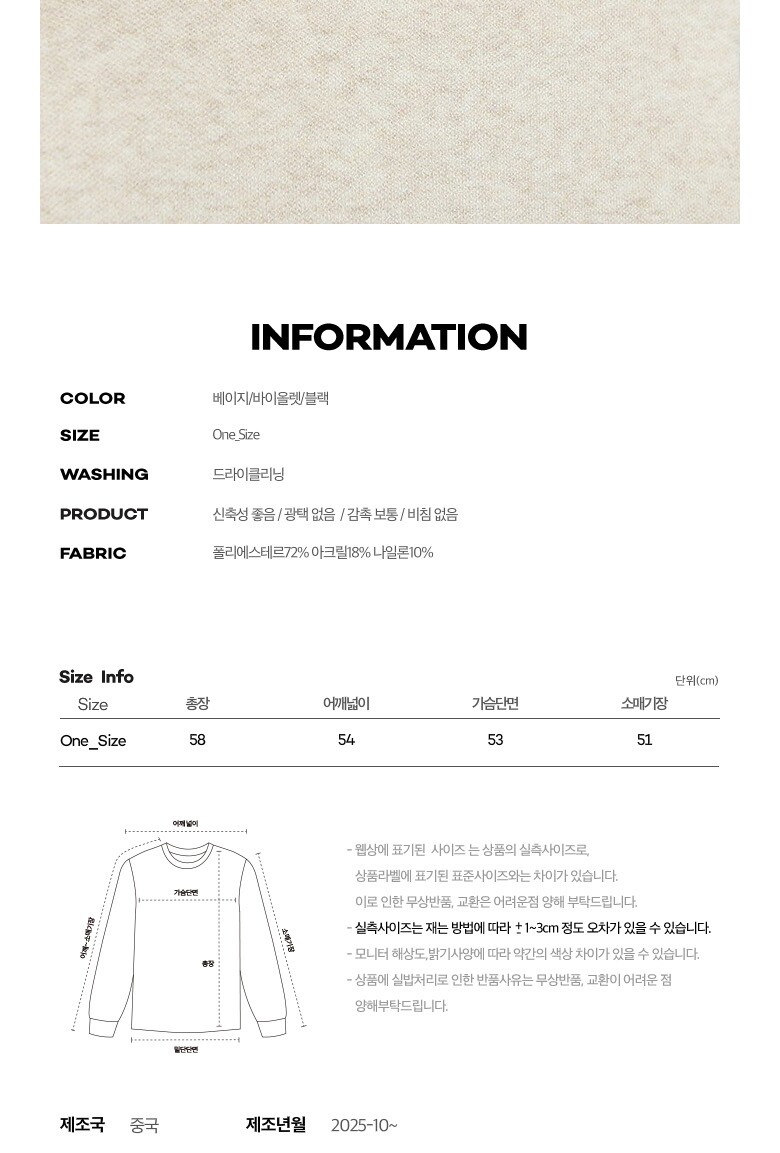 | 1. 제품 소재 (섬유의 조성 또는 혼용률을 백분율로 표시, 기능성인 경우 성적서 또는 허가서) | 폴리에스테르72% 아크릴18% 나일론10% |