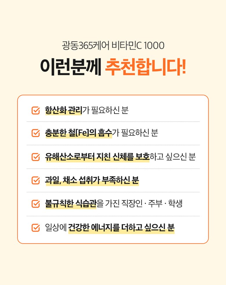 | 1. 제품명 | 광동365케어 비타민C 1000 |