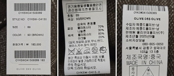 · 취급 시 주의사항 : 원단특성상 마찰시 이염,보풀,미어짐이 발생 가능하므로 착용시 주의 하십시오.