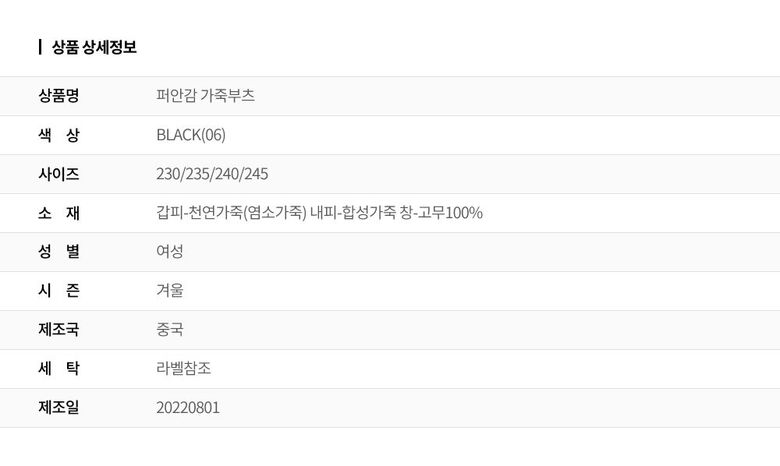 | 1. 제품 소재 (운동화인 경우에는 겉감, 안감을 구분하여 표시) | 갑피-천연가죽(염소가죽) 내피-합성가죽 창-고무100% |