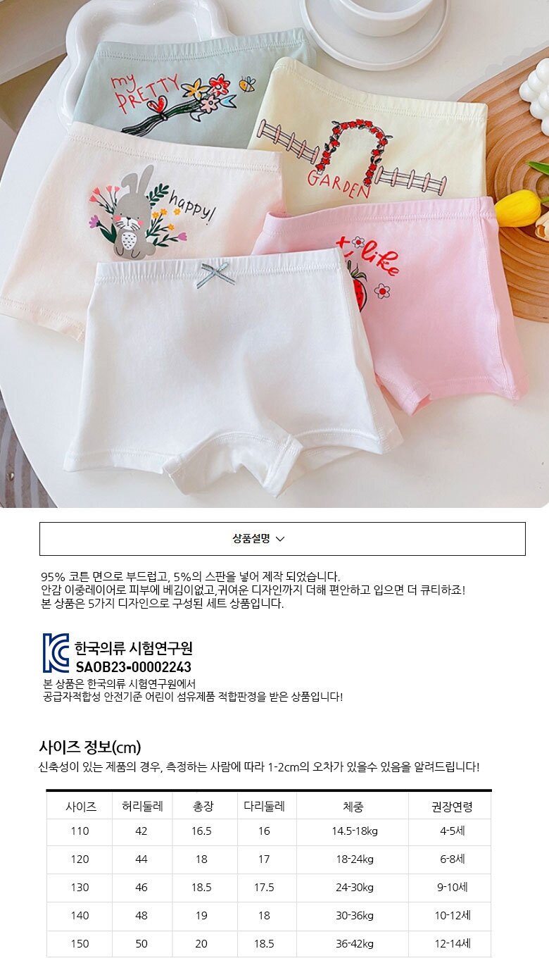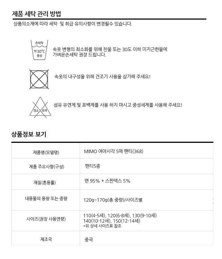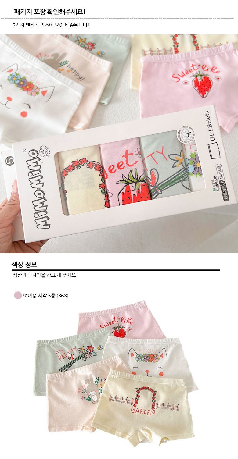 MIMO 여아/주니어 코튼 사각팬티 5매세트(368)