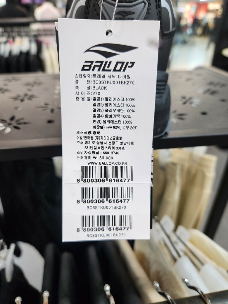 | 1. 제품 소재 (운동화인 경우에는 겉감, 안감을 구분하여 표시) | 배색:폴리에스테르, 고무 |