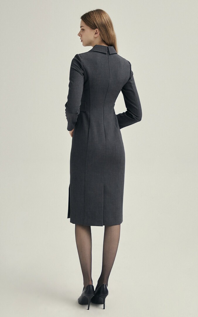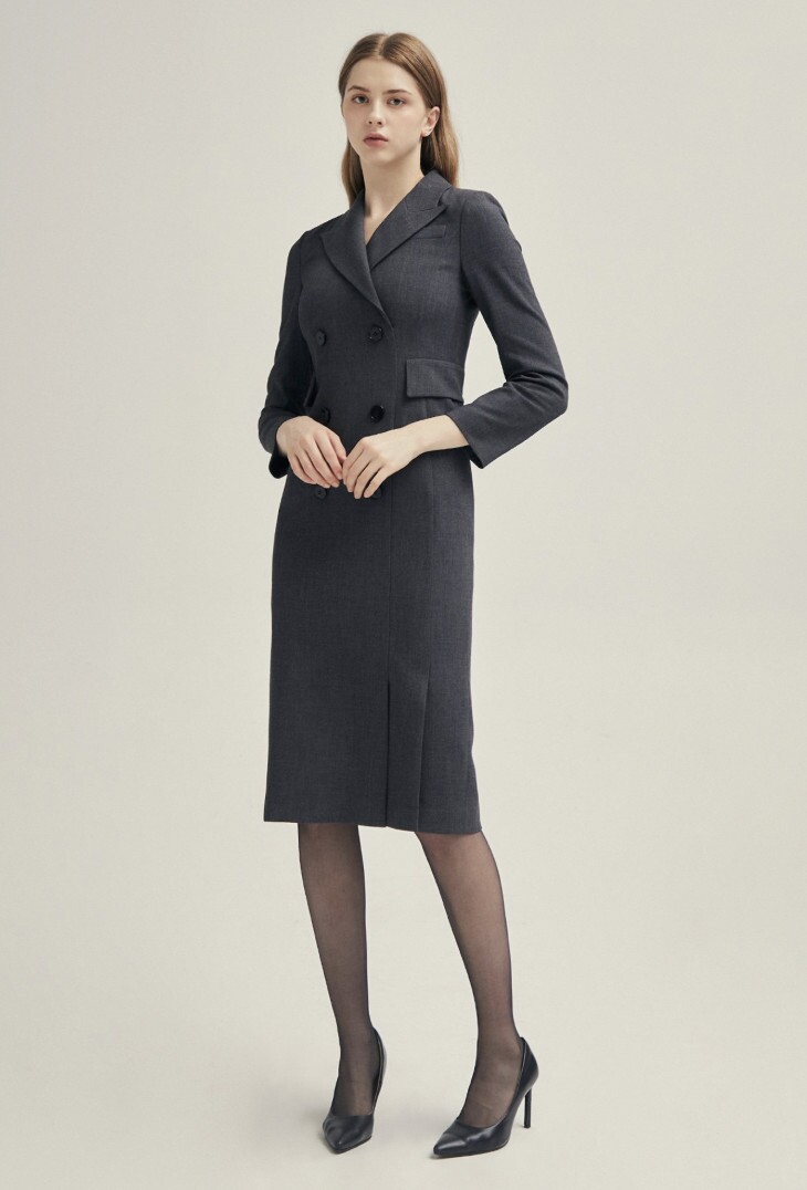 [지고트] 멜란지 플리츠 더블 브레스티드 원피스 (JRBA0OP842)