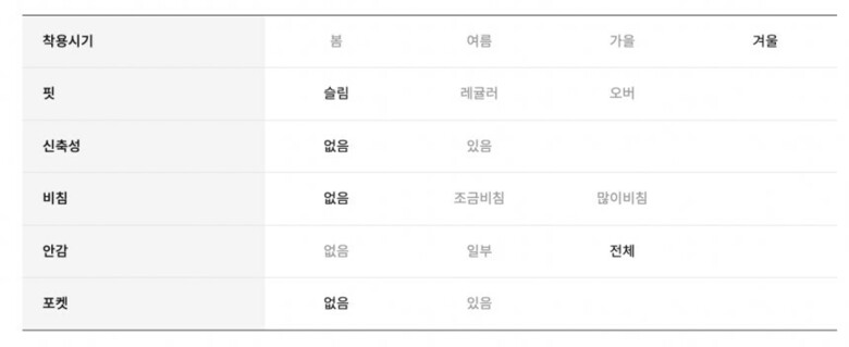 · 겉감 : 폴리에스터63%,레이온31%,폴리우레탄6%