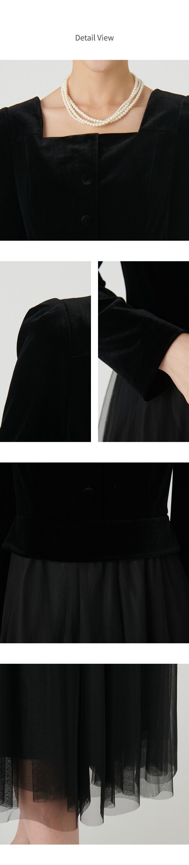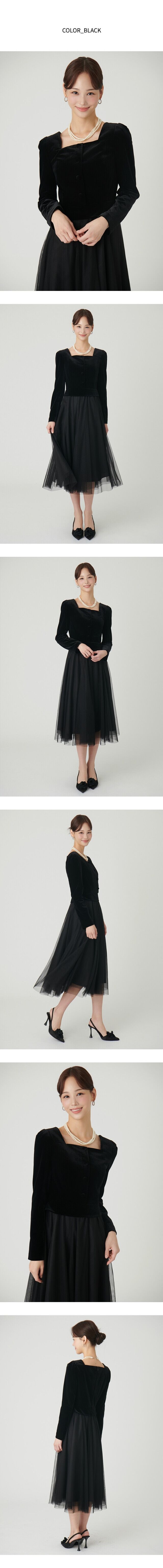 진주목걸이 SET 샤 배색 벨벳 원피스 S244b655