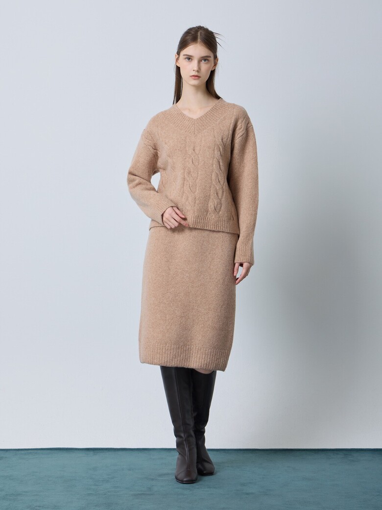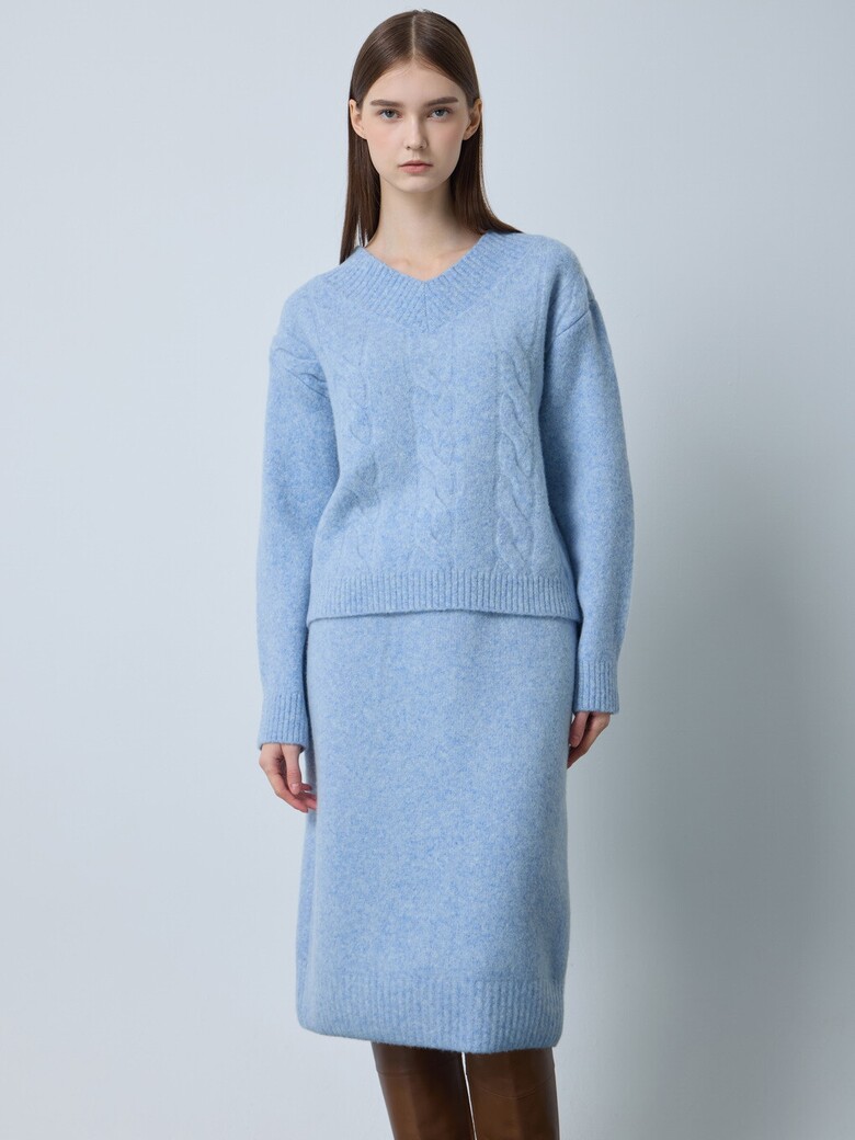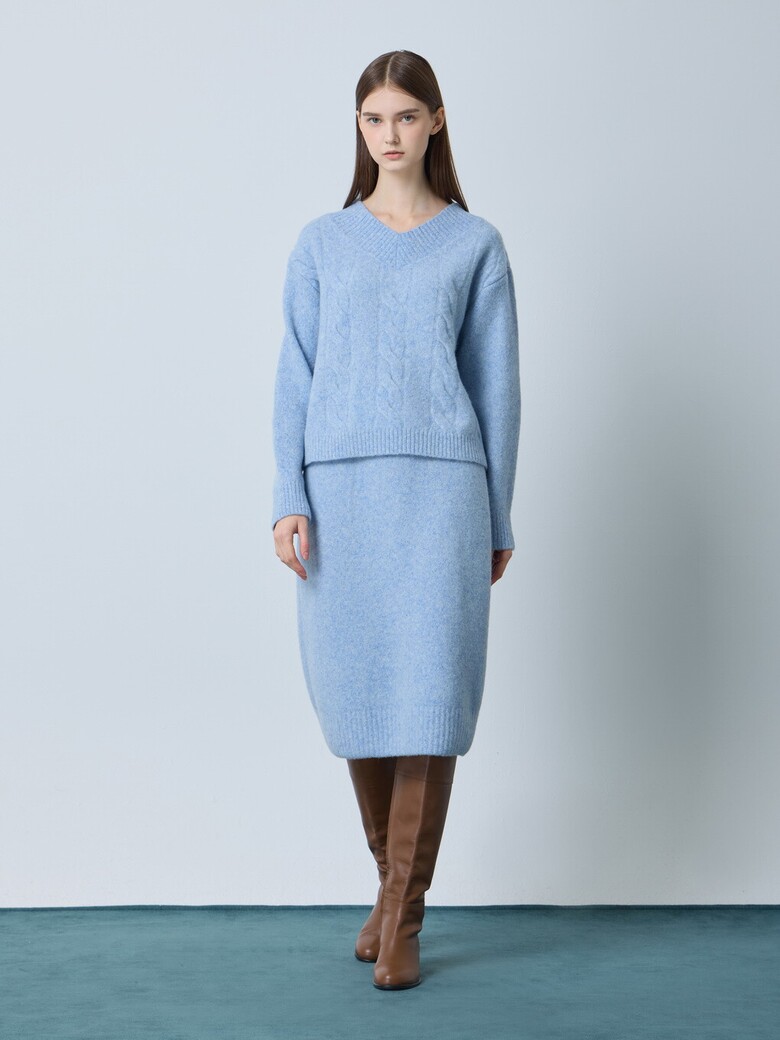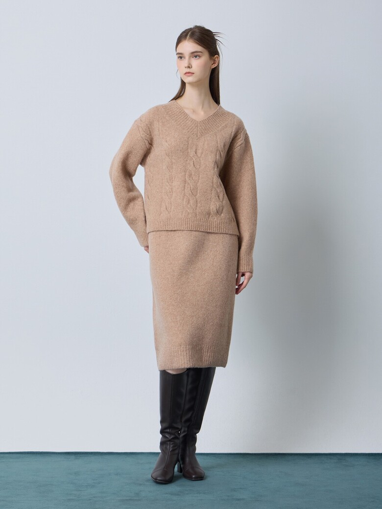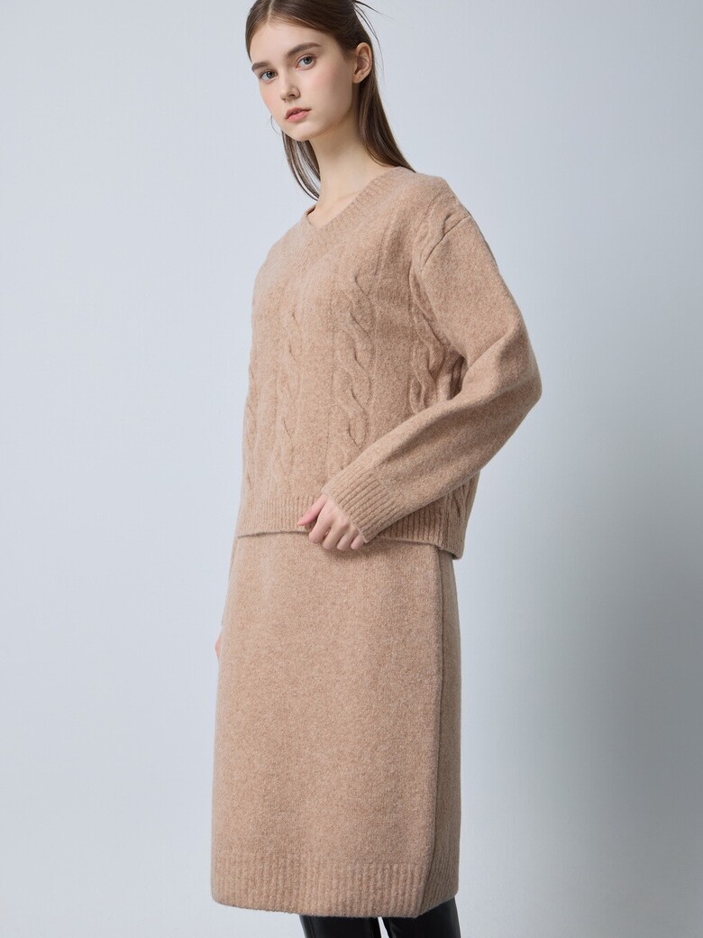 씨씨콜렉트 (SET-UP) 케이블 브이넥 울 니트 C244KSK039