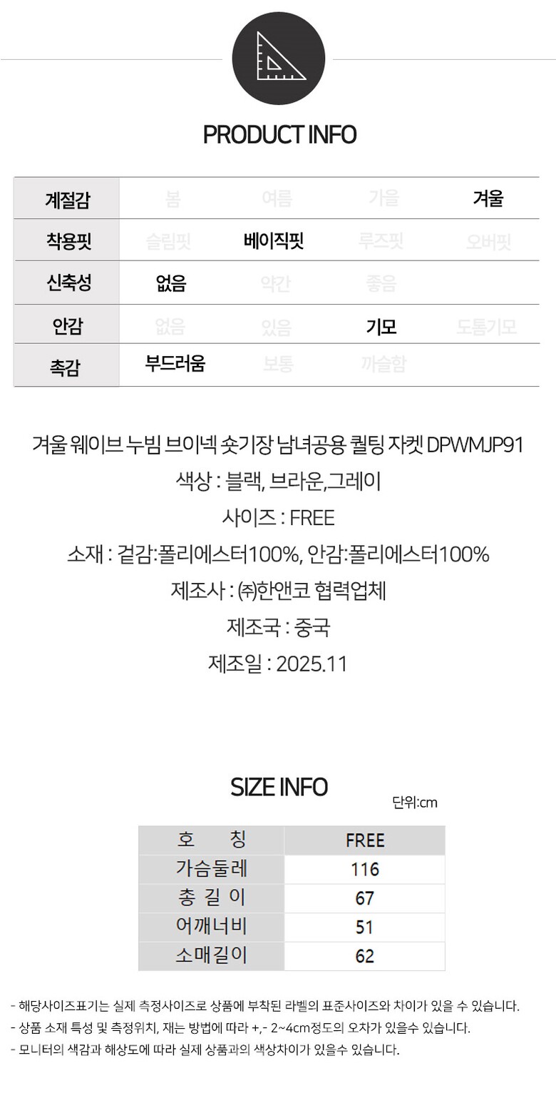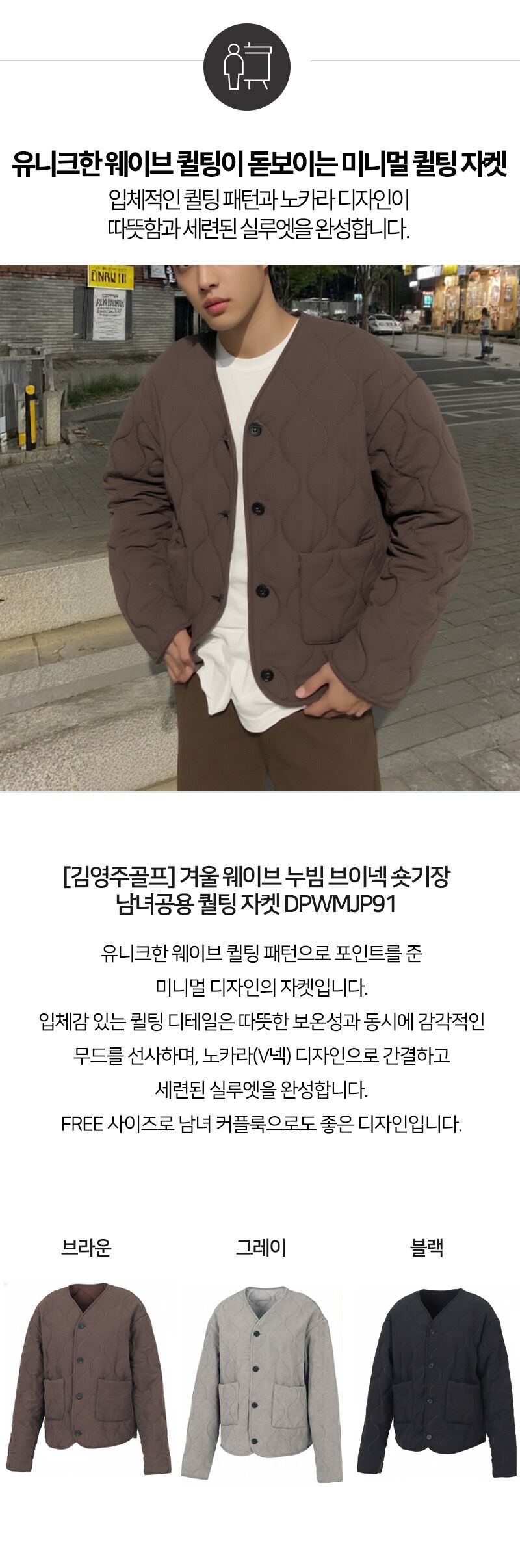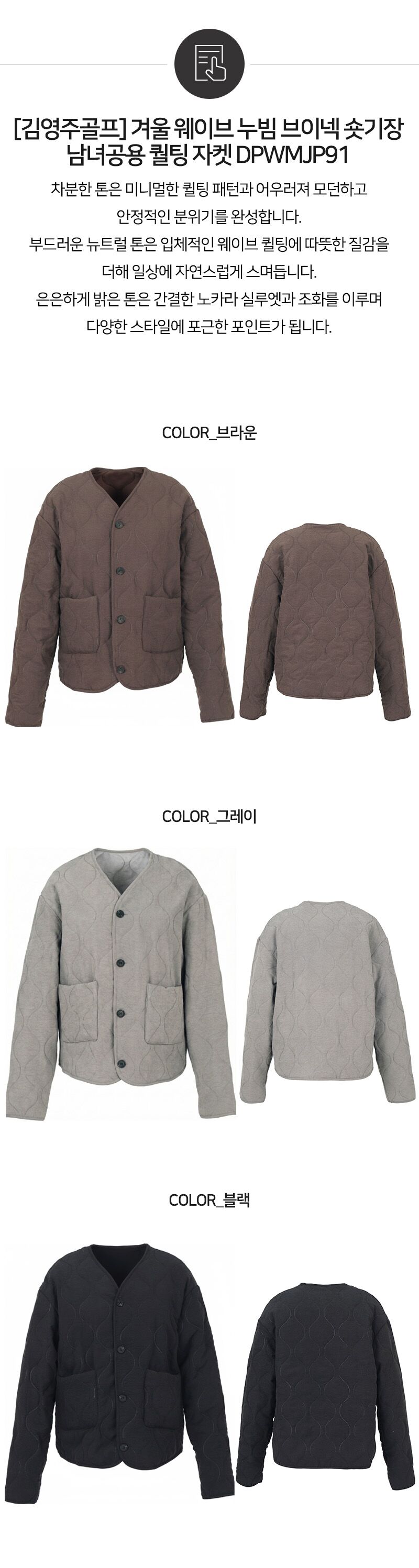 [김영주골프] 겨울 웨이브 누빔 브이넥 숏기장 남녀공용 퀄팅 자켓 DPWMJP91