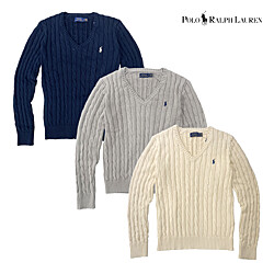 폴로 랄프로렌 여성 브이넥 꽈배기 니트